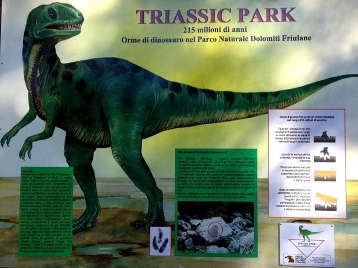 Nel territorio delle Dolomiti Friulane esistono diversi rinvenimenti di orme di dinosauro, ricordiamo che in Italia, fino al 1985 non ne era stata trovata neanche una e che, a livello mondiale, le ORME DI TEROPODE sono molto rare.