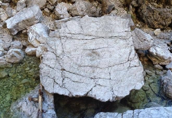 Trattasi di un grande masso roccioso costituito da Dolomia Chiara, staccato dalla sovrastante parete rocciosa costituita da Dolomie principali Stratificate e giace sul letto di un torrente.
